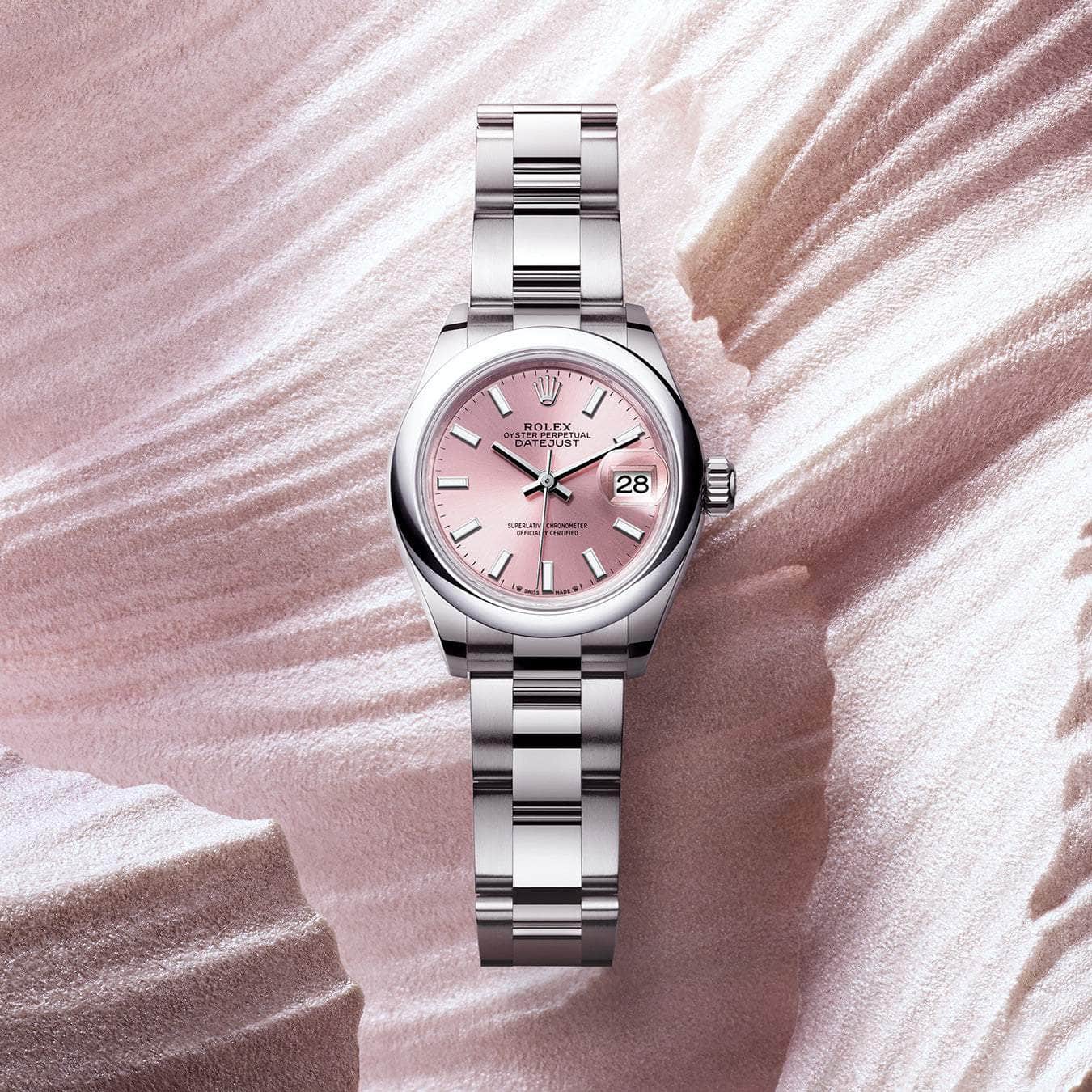 Like all Rolex watches, the Lady-Datejust is covered by the Superlative Chronometer certification. This designation testifies that every watch leaving the brand's workshops has successfully undergone a series of tests conducted by Rolex in its own laboratories according to its own criteria. The Superlative Chronometer status is symbolized by the green seal that comes with every Rolex watch and is coupled with an international five-year guarantee.