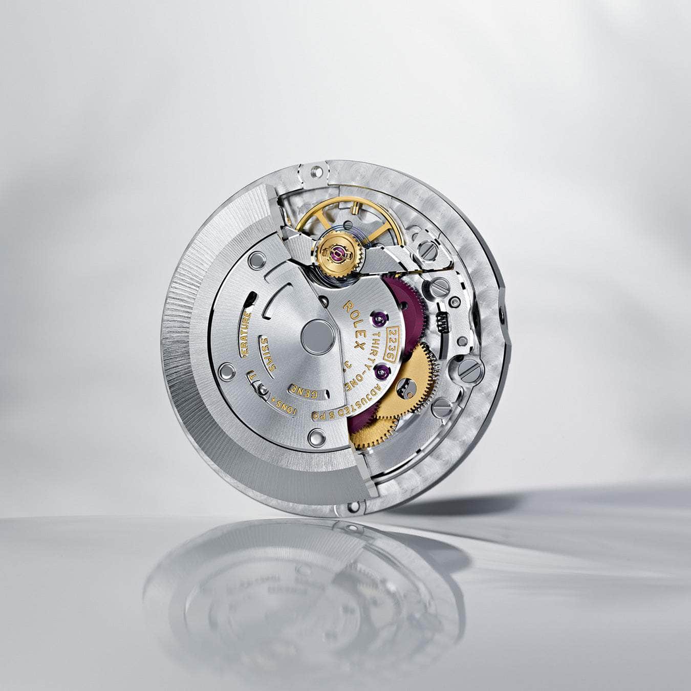 The Lady-Datejust is equipped with calibre 2236, a self-winding mechanical movement entirely developed and manufactured by Rolex. Its architecture makes it exceptionally precise and reliable. Calibre 2236 is fitted with a Syloxi hairspring in silicon, patented and manufactured by Rolex. Resistant to magnetic fields, the Syloxi hairspring provides great stability in the face of temperature variations and remains up to 10 times more precise than a traditional hairspring in case of shocks. Its patented geometry ensures its regularity in any position.