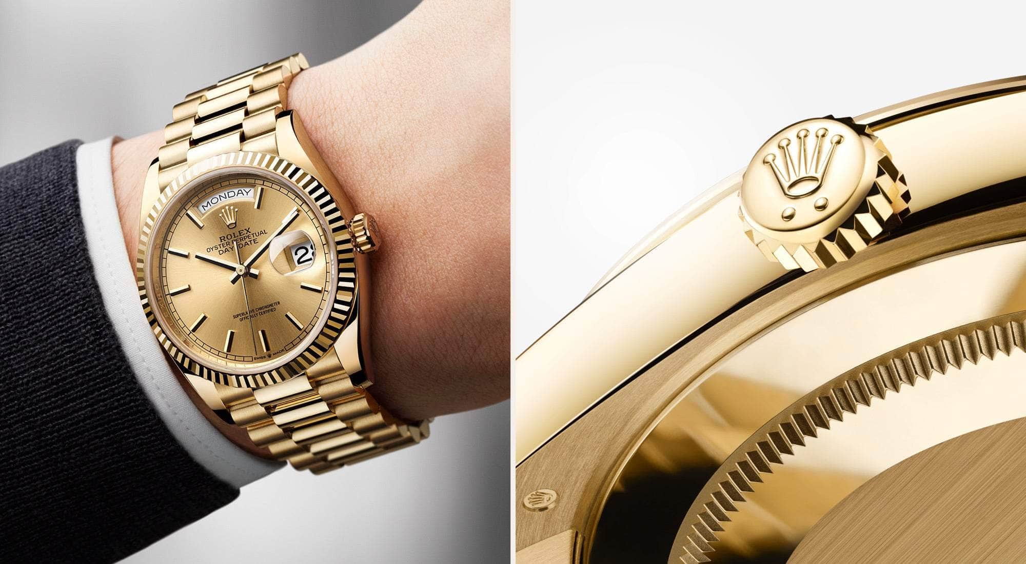 Decades come and go, but the Day-Date remains where it has always been – at the cutting edge of modernity. A timepiece of prestige and the fruit of Rolex's watchmaking expertise, the Day-Date accompanies those personalities who shape the world in their respective disciplines through their commitment, human qualities and creative genius.