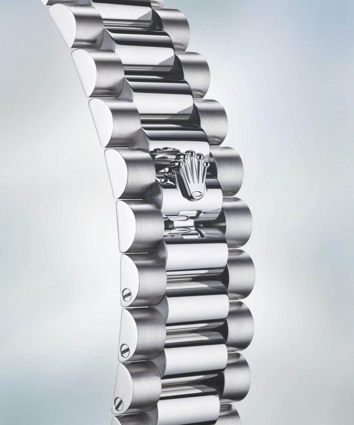 Created specially for the launch of the prestigious Oyster Perpetual Day-Date and unveiled in 1956 at the model’s launch, the three-piece link President bracelet, made only from 18 ct gold or 950 platinum, is still reserved exclusively for the Day-Date and precious metal versions of the Datejust.