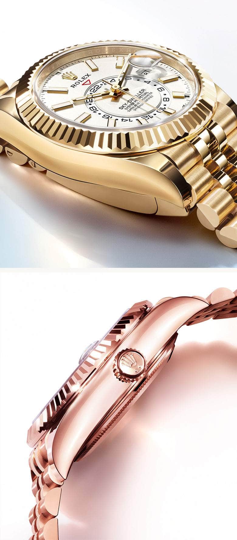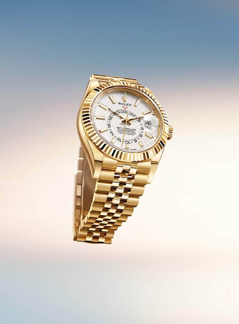 An elegant watch for frequent travellers, the Sky-Dweller displays the time in two time zones simultaneously and has an annual calendar.