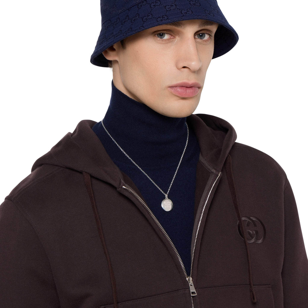 The Gucci Blind For Love Silver Pendant Necklace is a striking accessory that suits anyone. Crafted from high-quality silver, this necklace exudes a modern aesthetic while maintaining timeless appeal. Its minimalist design features the iconic "Blind For Love" engraving, making it a statement piece that resonates with individuality.