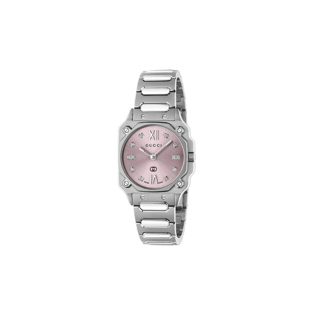 The Gucci G-Flat 24mm Diamond Ladies Watch stands as a definitive expression of contemporary luxury, marrying Italian horological expertise with modern design principles. This refined timepiece features a precisely calibrated 24mm case complemented by expertly set diamonds that enhance its sophisticated aesthetic without compromising functionality. The G-Flat's clean lines and minimalist architecture reflect current design trends whilst maintaining the timeless appeal essential to fine watchmaking. Engineered for the confident woman who recognises quality craftsmanship, this watch performs flawlessly across diverse environments—from professional settings to formal occasions. The diamond accents provide subtle luminosity, whilst the movement ensures reliable accuracy.