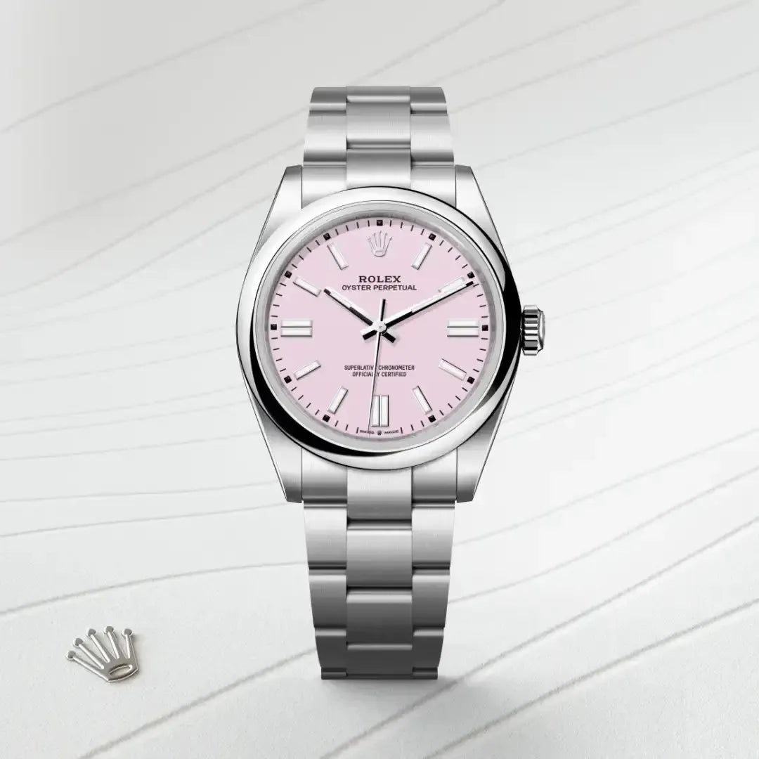 The Oyster bracelet is a perfect alchemy of form and function, aesthetics and technology. First introduced in the late 1930s, this particularly robust and comfortable metal bracelet with its broad, flat three-piece links remains the most universal bracelet in the Oyster collection. For the Oyster Perpetual models the Oyster bracelet is fitted with an Oysterclasp.