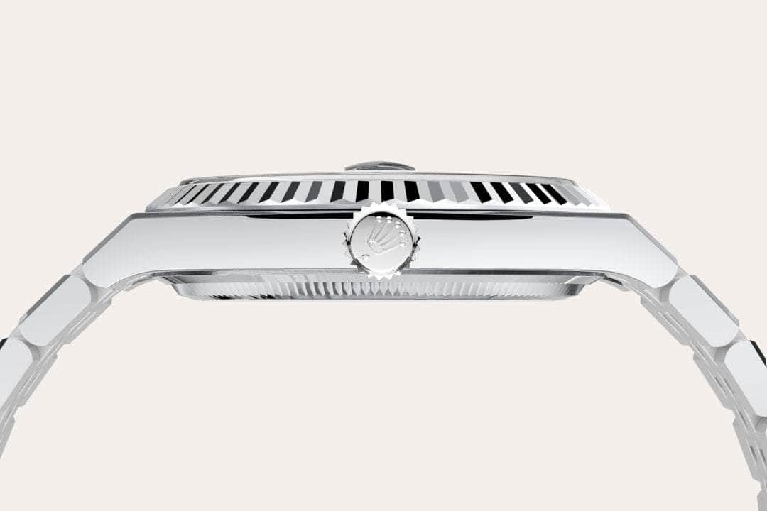 The Rolex fluted bezel is a mark of distinction. Originally, the fluting of the Oyster bezel had a functional purpose: it served to screw the bezel onto the case helping to ensure the waterproofness of the watch. It was therefore identical to the fluting on the case back, which was also screwed onto the case for waterproofness, using specific Rolex tools. Over time, the fluting became an aesthetic element, a genuine Rolex signature feature. Today the fluted bezel is a mark of distinction, in gold on this Land-Dweller 40.