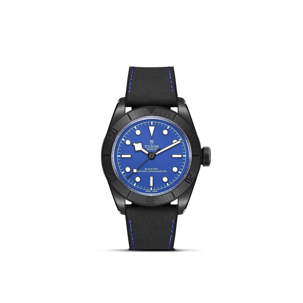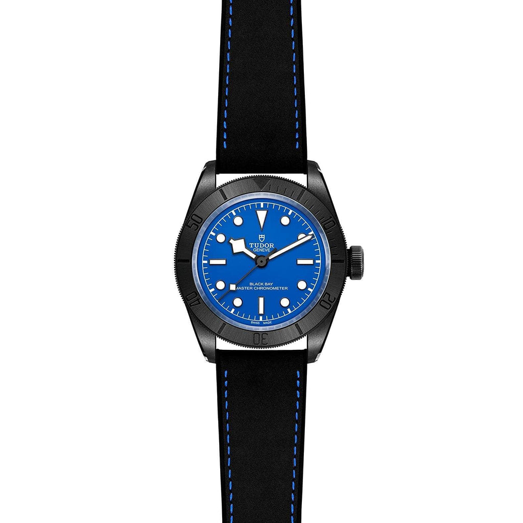 - Complimentary black fabric strap with blue band and black PVD-treated 316L steel buckle